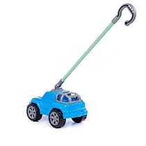Автомобиль-каталка "Дени" с ручкой (голубой)
