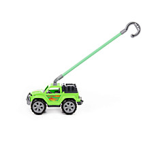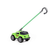 Автомобиль-каталка «Легионер» с ручкой (зелёный) – стильный джип для малышей. Удобная ручка позволяет везти машинку перед собой во время игры. Надёжные колёса повышают проходимость на различных поверхностях. Продаётся игрушка в сеточке.