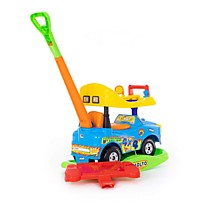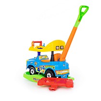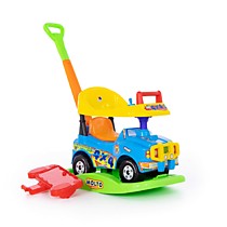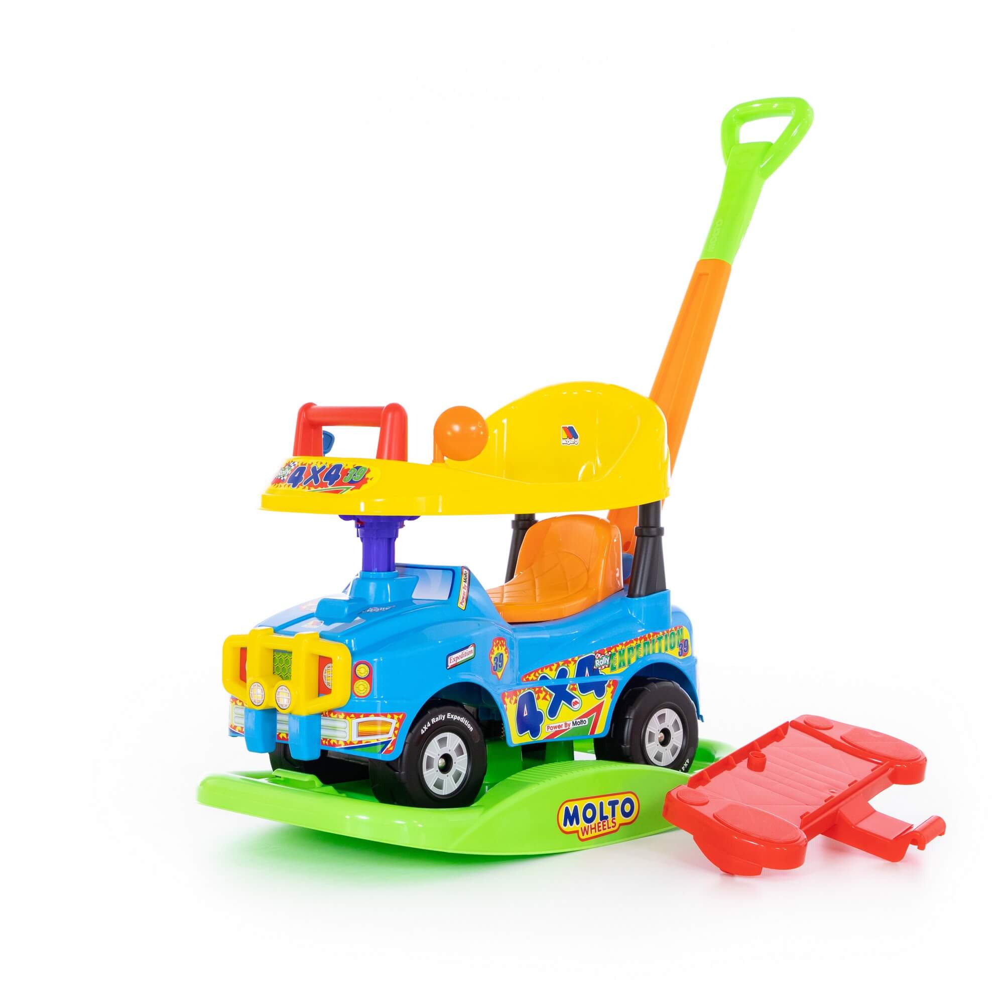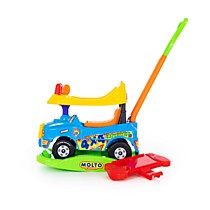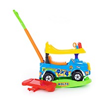 Каталка выполнена в виде джипа в ярких цветах и имеет оригинальный дизайн. На такой каталке ребенок сможет самостоятельно кататься, отталкиваясь ногами. А если малыш устанет, на каталку всегда можно быстро установить ручку и подножки и кататься при помощи взрослых.