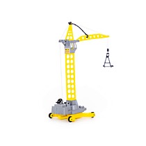 Игрушка выполнена из безопасного и качественного пластика. Дизайн, цветовое решение и функционал приближены к реальной строительной технике, что понравится не только детям, но и взрослым. Кран оборудован специальным механизмом, позволяющим поднимать и опускать грузы, а также колесиками, обеспечивающими комфортное перемещение в процессе игры.